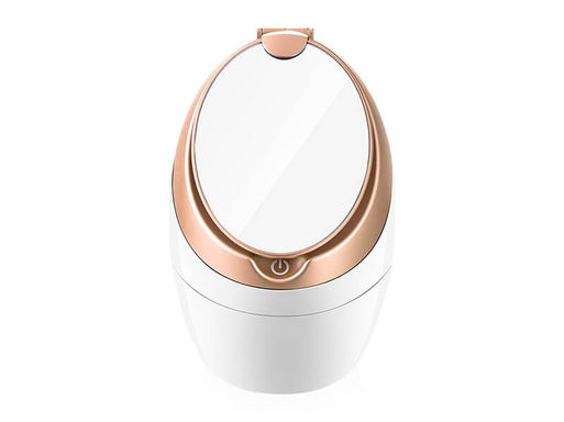 The flip-up lid doubles as a cosmetic mirror with a soft LED ring light. With a simple touch, you can inspect pores, apply skincare right after steaming and enjoy an evenly illuminated reflection during your routine.